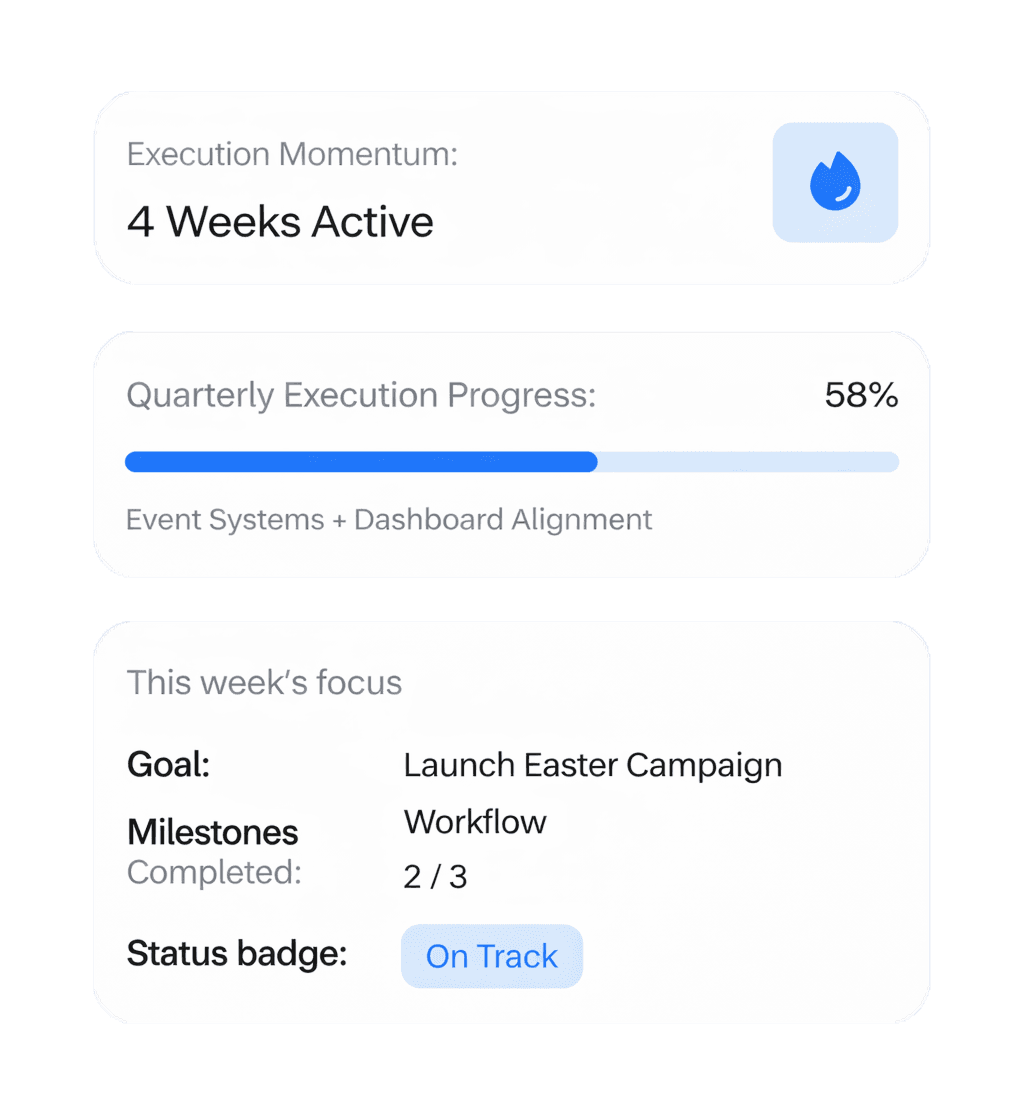 We streamline processes, define ownership, and implement automation so your team executes consistently.